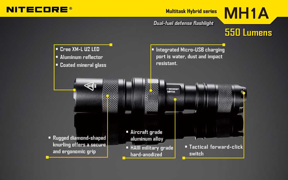 • Broad voltage circuit accepts both 14500 battery and AA battery