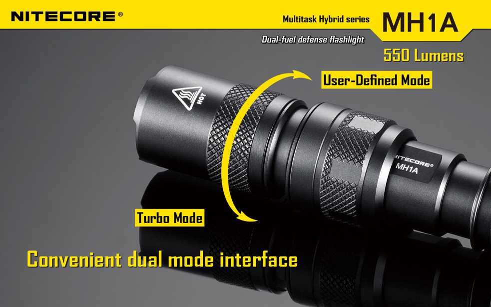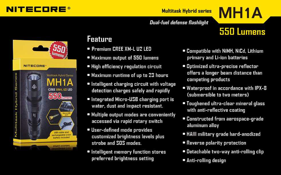 • User-defined mode provides customized brightness levels plus strobe and SOS modes.