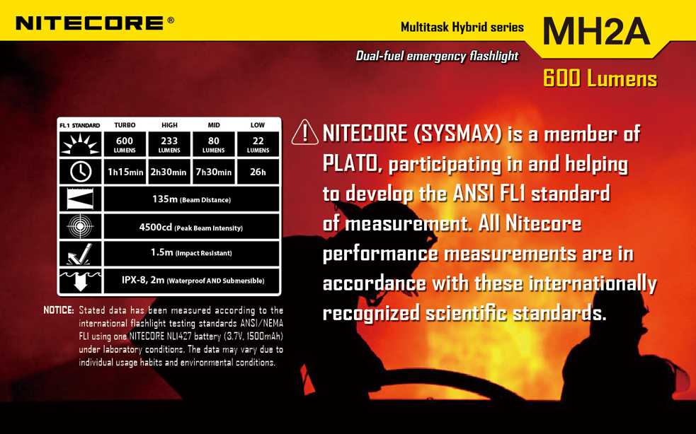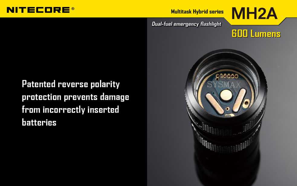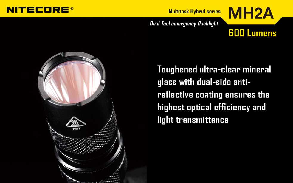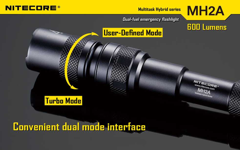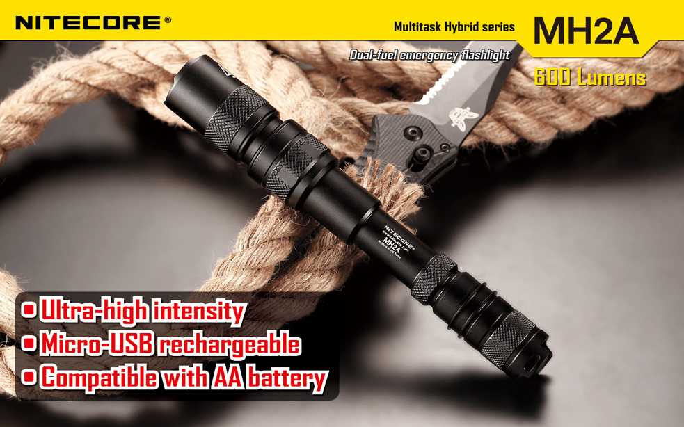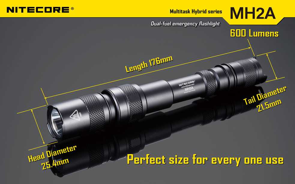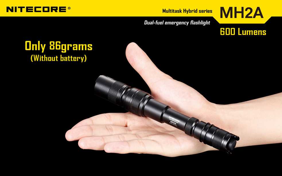 • Broad voltage circuit accepts both Nitecore dedicated battery and two AA batteries