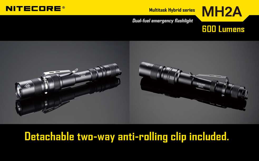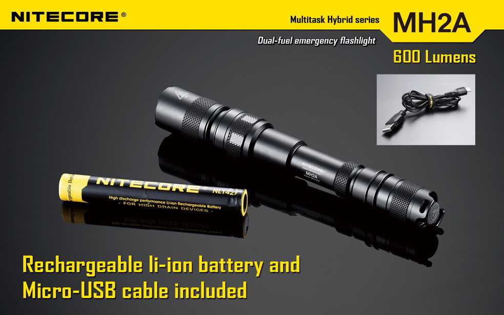 Nitecore MH2A dedicated battery(NL1427), lanyard, USB cable, clip, holster, spare switch cap and spare O-ring