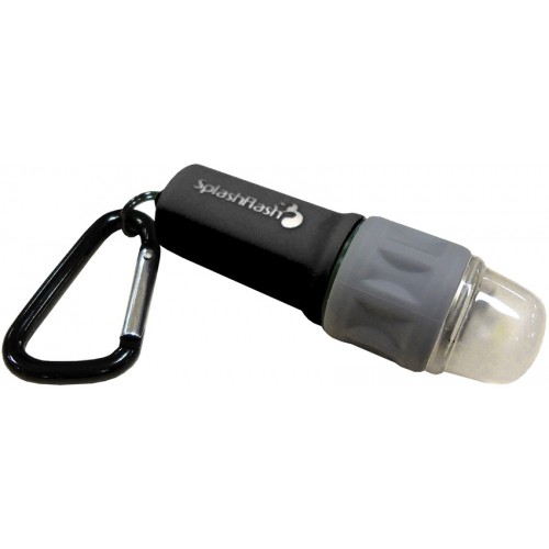 Ultimate Survival Splash Flash LED Personal Locator Light. 2 3/4" overall. Black impact-resistant ABS housing with attachment clip. Multifunction light with Steady-On and SOS flashing modes works as a flashlight, mini lantern, safety light, or as a personal locator light. Bright white lifetime LED bulb is unbreakable and provides up to 25 lumen output. 360 degree visibility. Textured lens produces broad, soft illumination. Waterproof and submersible. Rated to IPX7 - submersible to one meter, for 30 min. Uses one AAA battery (included). Runtime per battery: up to 11 hours - steady-on mode, or up to 16 hours - SOS flashing mode. Weight: 1 oz. with battery. Hang packaged.